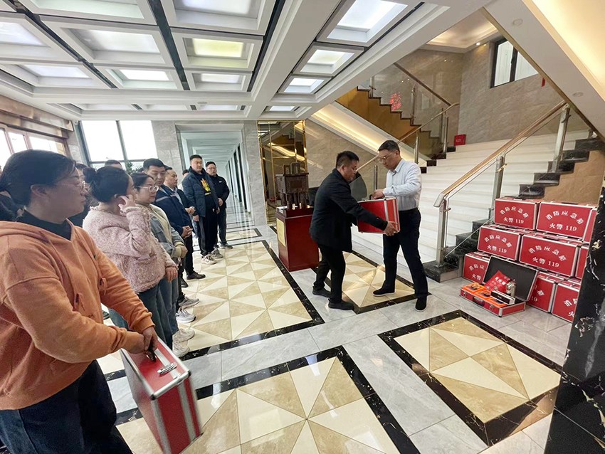 董事長心系職工家庭消防安全,統(tǒng)計(jì)了所有職工居住樓層情況,并為居住高層的職工發(fā)放消防應(yīng)急箱。